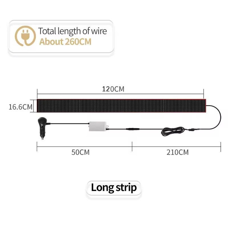 این پنل ماتریکسی LED ۱۲۰ سانتیمتری یک راهکار حرفهای برای نمایش متن، انیمیشن و پیامهای دیجیتال روی شیشه جلو خودرو و کامیون است. با بیش از ۱۰۰ برنامه آماده و قابلیت برنامهریزی دلخواه، این پنل به شما امکان میدهد جلوهای خاص و منحصربهفرد به وسیله نقلیه خود بدهید ارتفاع پنل هم ۱۶.۶ سانتی متر میباشد