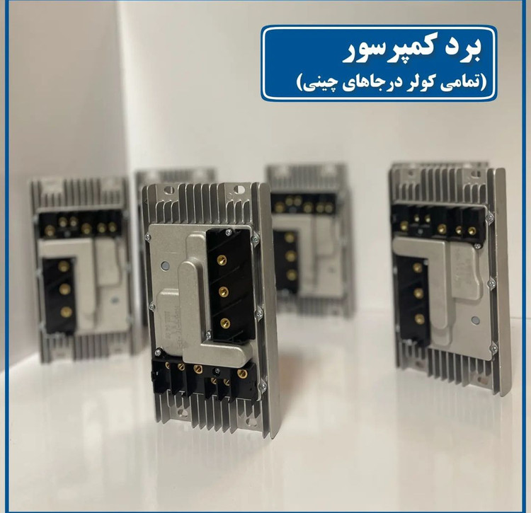 برد کمپرسور یا برد تغذیه کولردرجا 24 ولت نسل جدید کولرهای که با برق باطری ماشین آلات کار میکنند این قطعه که داخل باکس موتور کولردرجا قرار دارد .این برد در اثر نوسان برق آسیب میبیند . که در صورت ایراد یا مشکل باید تعویض گردد . استارت در صورتی که کولر روشن است باعث این اتفاق خواهد شد
