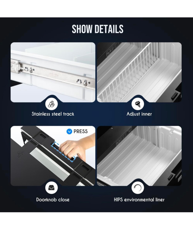 یخچال فریزر با هم زیر تختی کامیون و تمام ماشین آلات برق ۱۲ و ۲۴ ولت این یخچال کشویی برق دوحالته ۱۲ و ۲۴ ولت کار میکند و به عنوان دلخواه یخچال یا فریزر کرد سیستمی هوشمند دارد و تا دمای منفی ۲۰ درجه زیر صفر فریز میکند اختصاصی برای ماشینهای سنگین و زیر میباشد ولی میتوان در داخل سواری هم استفاده نمود بازرگانی رحیمی بانه ۰۹۱۸۴۱۸۰۰۴۳
